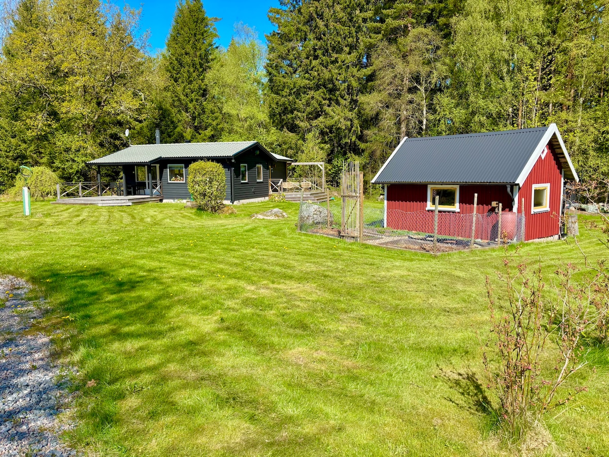 Fullutrustad 3rums stuga i lantlig natur, fina vandringsleder runt knuten. 1 mil från kommunikation m tåg till Göteborg 2 mil till fina cafestaden Alingsås. Acogedora casa de madera con cocina, baño, 2 dormitorios y sala de estar en la hermosa campiña sueca. A unos 10 km de Vårgårda y a 22 km de la hermosa ciudad cafetera de Alingsås. El tren a Gotemburgo está disponible en ambas comunidades. Bonitas rutas de senderismo.