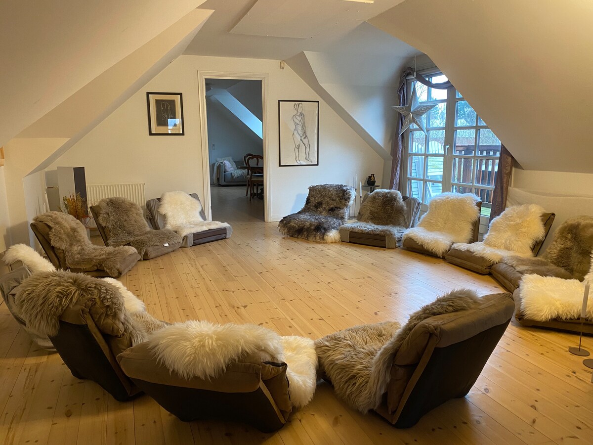Esrum es un pequeño pueblo situado a 50 km de Copenhague. Esrum es hermoso situado junto a uno de los bosques más grandes de Dinamarca, Gribskov, y a poca distancia de Esrum Lake. Gribskov ofrece muchas actividades al aire libre, como senderismo, ciclismo de montaña, observación de aves y mucho más. El monasterio de Esrum se encuentra a 100 metros de la casa y ofrece museos y diferentes actividades. Durante el día hay un café que sirve platos ligeros. La tienda de comestibles más cercana está en el siguiente pueblo, a 3 km de distancia.