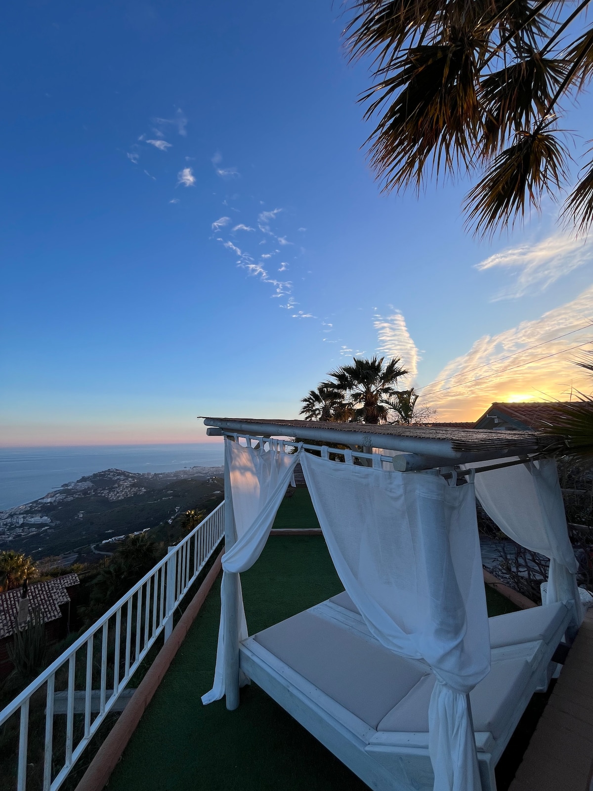 Villa Calypso. Experience the quintessential coastal getaway in this luminous Andalusian-style villa, where every room is a window to the breathtaking 180º vistas of the Mediterranean. Enjoy sunshine all day! The 3-bedroom house has a private salt water pool with optional heating (please request in advance) and terraces with views all around. Enjoy the fully equipped kitchen, bright living area and stylish furniture. With garage and high-speed wifi. Enjoy this beachfront airbnb year-round! 🏝️