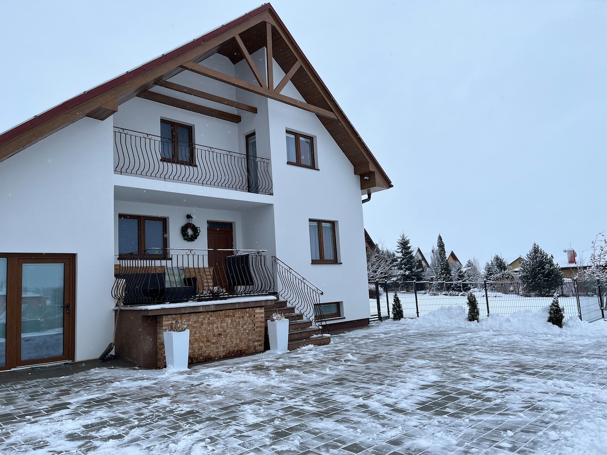One-level apartment (100 m2) located in a wooden house at an altitude of 1050 above sea level!!! The entrance is separate. The apartment has a large terrace, we provide deckchairs. The view of the mountains "enters" the living room:) You can park your car on the property. The sauna and fireplace are free ,the 2x jacuzzi ( wood hot tub) paid extra. You can reach Gubałówka on foot(1 hour) and go by ropeway to Krupówki (4 minutes). Surroundings: hiking and cycling routes, ski slops!