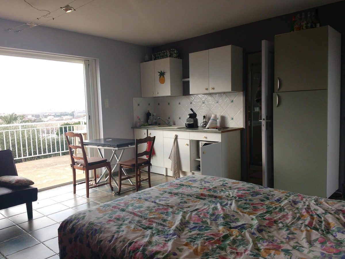 Estudio con hermosas vistas wifi aparcamiento tranquilo, a 7 km de la playa