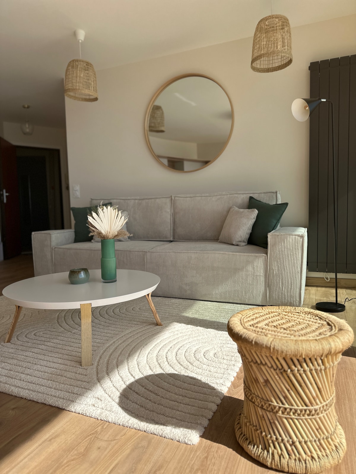 ¡Cerca de las playas, Villa de 70m2 con jardín de 100m2 en una zona tranquila con 2 plazas de estacionamiento! Estación de carga eléctrica frente a la casa Cocina equipada (heladera, congelador, placa de inducción de 3 fuegos, microondas, horno, lavavajillas, lavadora) 2 habitaciones (cama de 140, vestidor) Una cama de 140 al fondo de la sala de estar separada por una cortina Baño con bañera Sistema de climatización reversible Wifi Netflix, Juegos, Revistas Muebles de jardín, mesa con 6 sillas, barbacoa Baños de sol