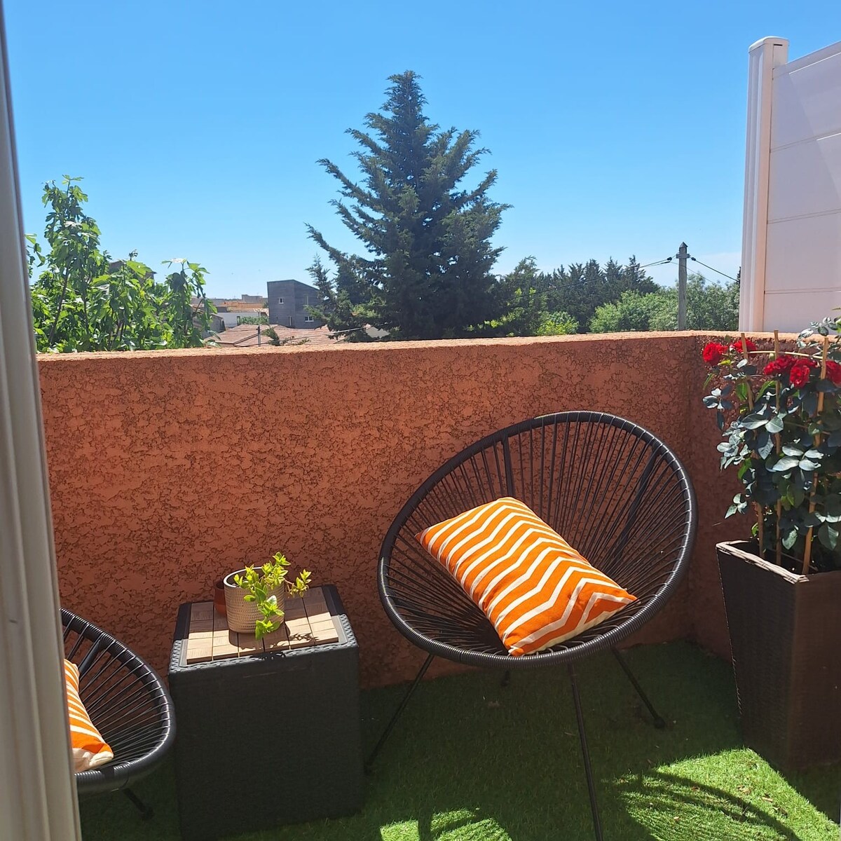 Bonito estudio nuevo de 12 m2 en la planta baja cerca de las playas (Sérignan, Valras y Vendres ) luminoso a 10 minutos a pie del centro de la ciudad y sus múltiples mercados . Urbanización tranquila, posibilidad de aparcar en frente de la casa. De abril a octubre , puede disfrutar de una terraza para tomar el desayuno al sol. Cocina americana equipada, placa vitro, nevera, microondas, cafetera. Sofá cama BZ Cuarto de baño privado con inodoro, ducha. Se proporcionan toallas y sábanas. Aire acondicionado a partir de junio de 2023