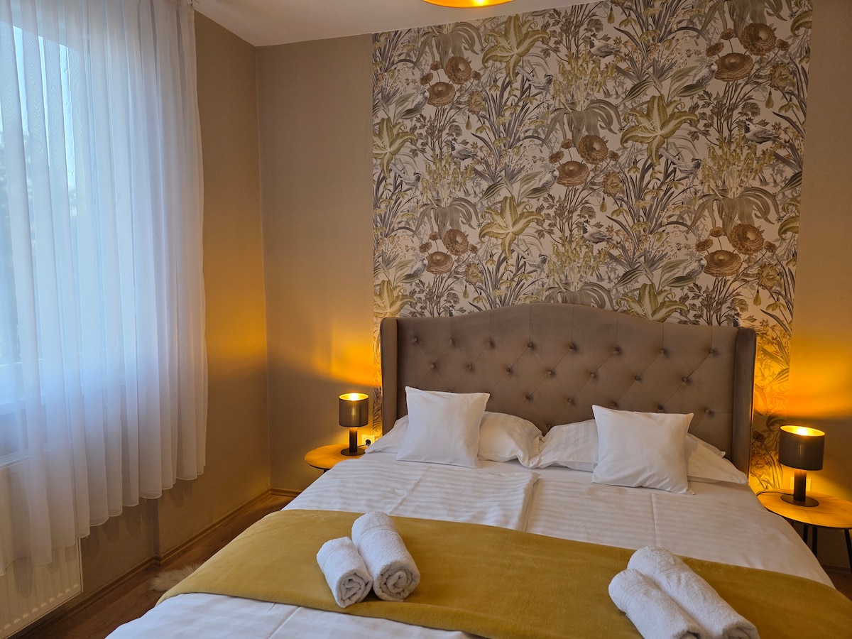 Esperamos a nuestros queridos huéspedes en la tranquila y suburbana de Veszprém. El centro de la ciudad está a 25 minutos a pie. El Veszprém Arena está a 10 minutos a pie. Hay una parada de autobús a 80 y 200 metros del apartamento. El centro comercial, los restaurantes de comida rápida y las piscinas también se encuentran a 10-15 minutos a pie. Nuestro apartamento ofrece un alojamiento cómodo para 2 personas, con cocina bien equipada, muebles nuevos y aparcamiento gratuito privado. Alojamiento calificado por el Consejo Húngaro de Calificación Turística.