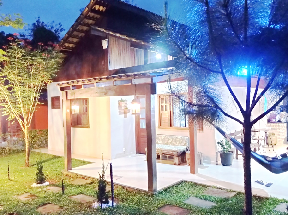 A solo 12 km del centro de Domingos Martins, el chalet está ubicado en un condominio en la zona rural del distrito de Biriricas, un lugar ideal para aquellos que buscan tranquilidad y paz para relajarse. Despierta con el sonido de los pájaros y duerme con el sonido de las aguas del río Jucu que está a solo 300 metros de la propiedad, con un montón de espacio verde que nos invita a un paseo a lo largo de hermosos senderos. La zona de ocio incluye campo de fútbol, piscina, piscina, totó, wifi, sendero a Río Beach y la Ruta Imperial.