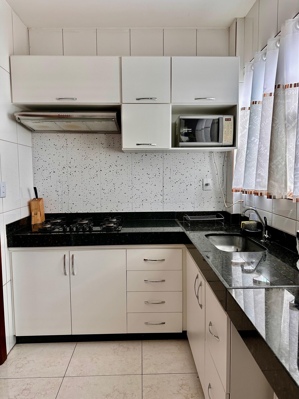 Apartamento en el centro de la ciudad, con mercados,farmacias,panaderías, estación de autobuses, lugar donde se detiene el Buser y restaurantes a menos de 5 minutos a pie. Está a menos de 1 km de Ufv. Se encuentra en un condominio con un portero las 24 horas. Tiene capacidad para 3 personas, con 1 colchón individual, ropa de cama y almohada disponibles. Cocina equipada con estufa eléctrica, nevera, microondas y utensilios de cocina básicos.