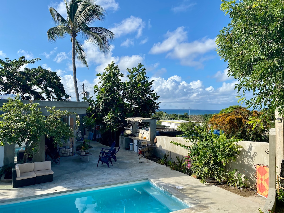 Casa Amor en las colinas de Esperanza es una escapada de ensueño. Un caso de privacidad, que ofrece dos suites totalmente separadas, un comedor al aire libre con vistas al océano, piscina de agua salada y barbacoa. ¡Las brisas son gratuitas! Una encantadora ducha al aire libre para enjuagarse bajo las estrellas, una hamaca para las tardes tranquilas... Desde la piscina y los jardines, encontrarás vistas al mar. (Ropa opcional) ¡Es privado y tranquilo! Escondido en un barrio seguro de los lugareños, a tres manzanas de la playa más cercana. No se permiten niños, mascotas ni fumadores