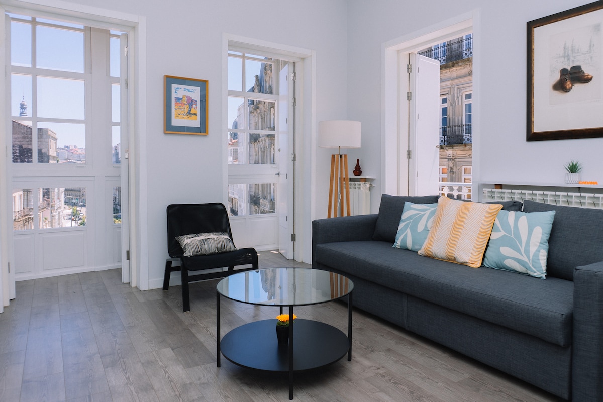 Una experiencia de lujo en este céntrico y luminoso apartamento equipado como una suite de hotel. Edificio histórico. El dormitorio, presidido por una confortable cama King size, Smart TV, balcón y un baño completo. El salón cuenta con una coqueta cocina americana, un comedor, Smart TV de gran formato, una cómoda mesa de trabajo junto al ventanal y un sofá- cama. Dos ventanales de tres metros de altura con balcones que se asoman a la “Puerta del Sol de Vigo”. Próximo al puerto- Islas-Cíes