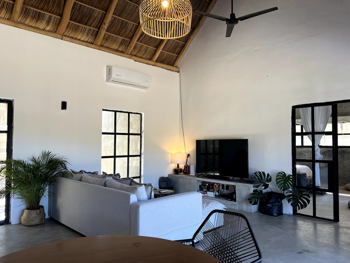 Casa Luna, nuestra escapada romántica, tiene una cama colgante tamaño queen en la planta superior con una vista espectacular del océano. También hay una sala de estar y una hamaca construida para dos. En la planta baja, hay una cama tamaño queen y una cama/sofá individual. Luna tiene una cocina totalmente equipada con una vista que da al mar. La estufa está a cuatro fogones, lo siento, no hay horno.