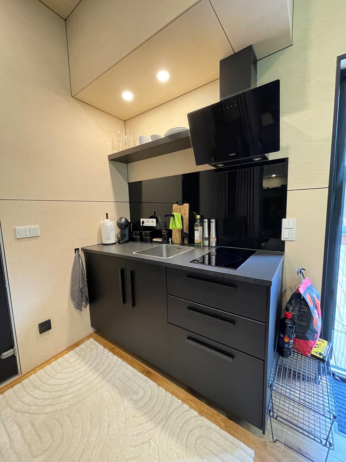 ¿Quieres una auténtica experiencia en una minicasa? Si es así, nuestra moderna casa pequeña recientemente construida te espera en medio de los bosques de Kassari. Te sorprenderá lo que solo 20+10 m2 de espacio pueden ofrecerte: acogedora sala de estar, cocina de tamaño completo, baño con ducha, zona de sauna relajante y espacio privado para dormir en el nivel superior de la casa. Como Kassari es conocida por sus paseos a caballo, también puedes ver algunos caballos pasando por la casa :)