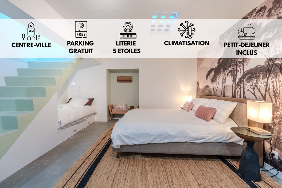 Este ático construido en 2020, por encima de mi vivienda principal, tiene un acceso totalmente independiente. Los huéspedes pueden disfrutar de la terraza y el jardín comunes, prioritariamente (tumbonas y sillones). Está a 600 m del centro de la ciudad, a 200 m de la parada de autobuses gratuitos. Puede estacionar su vehículo en el patio vallado, incluso una gran furgoneta de obra. ¡Este alojamiento acaba de tener aire acondicionado para mayor comodidad en verano!