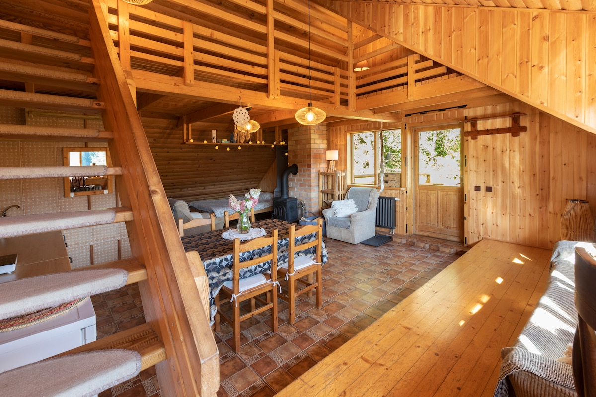 Lo que te encantará de este lugar: Casa rústica histórica de troncos con gran jardín ubicada dentro de una comunidad de nueva construcción con parque infantil para niños. Ubicación en la cima de una colina con vistas al horizonte a través de todas las ventanas, chimenea, suelos radiantes, aire acondicionado y espacio de oficina en casa. Fácil acceso por carretera pavimentada a través de puertas vigiladas - aparcamiento en territorio privado. Solo hay viviendas privadas cerca, por lo que es muy tranquilo. Fácil acceso: sin atascos de tráfico, siempre a 10 minutos a través del bosque del parque regional hasta el casco antiguo.