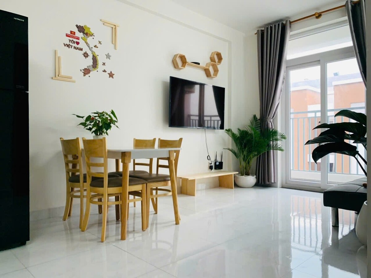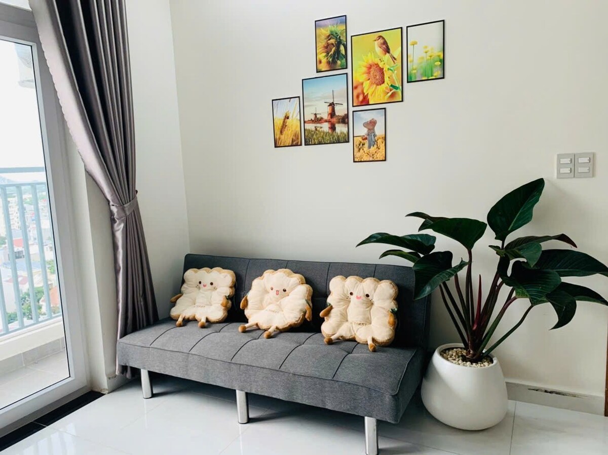 Mayhome se encuentra justo en el concurrido centro de la ciudad de Phan Rang; con vistas a la ciudad; a solo 3 km de la playa. El apartamento incluye 1 dormitorio y 1 inodoro con amplia sala de estar y espacio de cocina. El departamento está totalmente equipado con electrodomésticos y utensilios para que disfrutes de tu estancia más cómoda. Nota: 1/ La unidad tiene aire acondicionado en el dormitorio y ventilador en la sala de estar. 2/ Para reservaciones de más de 14 días, la electricidad utilizada por los huéspedes durante la estancia se cobrará por separado, no incluida en la tarifa de la habitación.