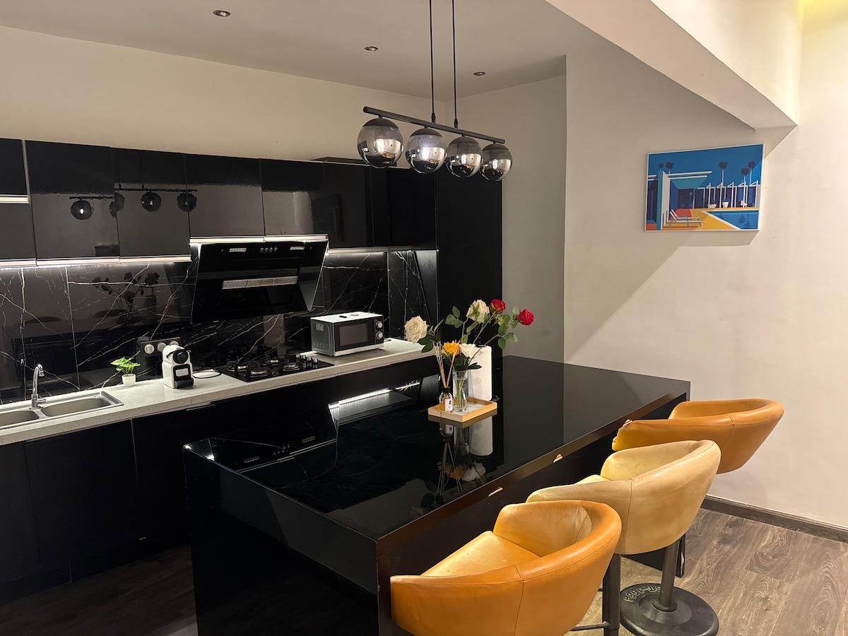 Elegante estudio, cálido con pérgola privada
