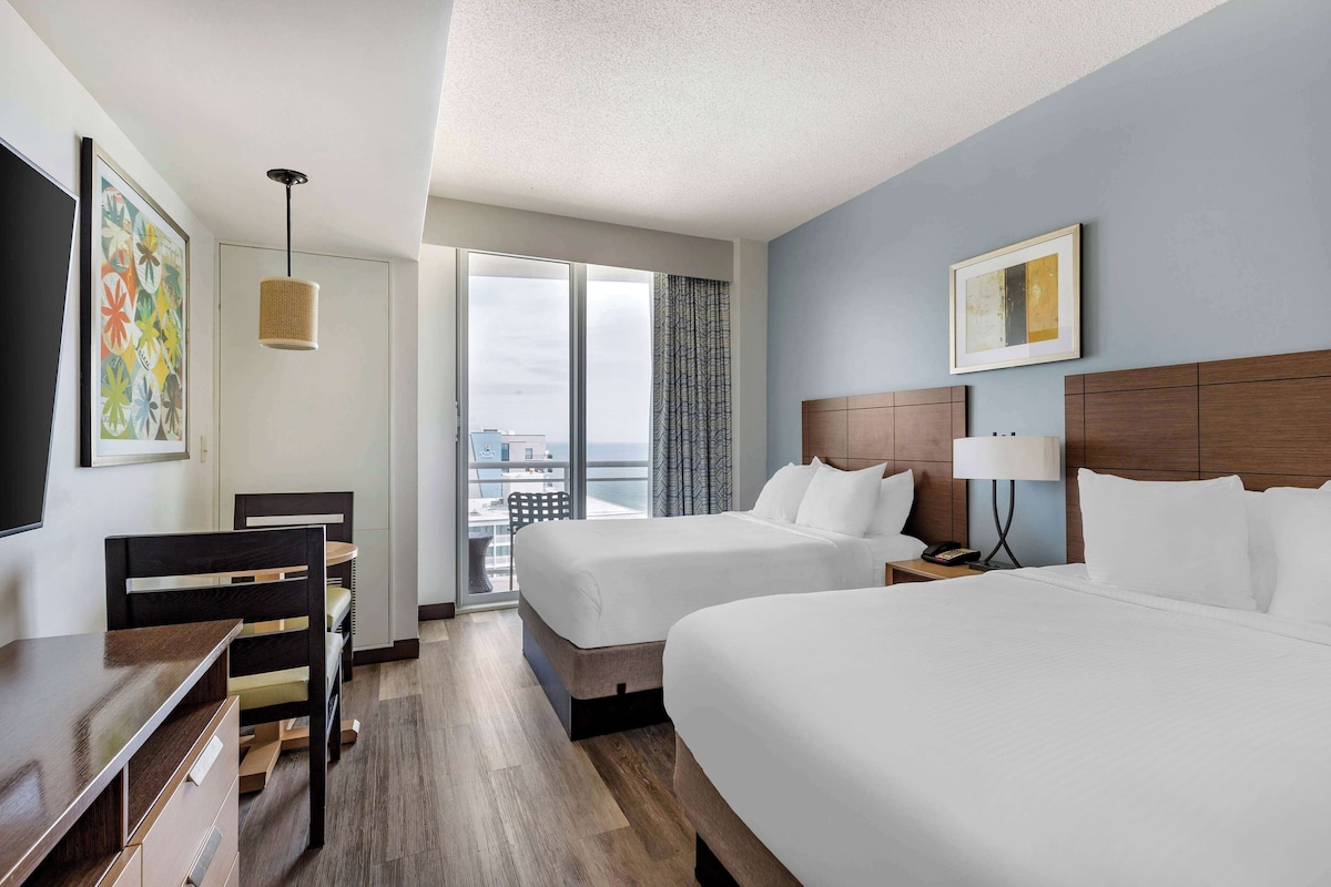 Suite con dos camas tamaño queen: vistas a la playa, balcón, en Atlantic