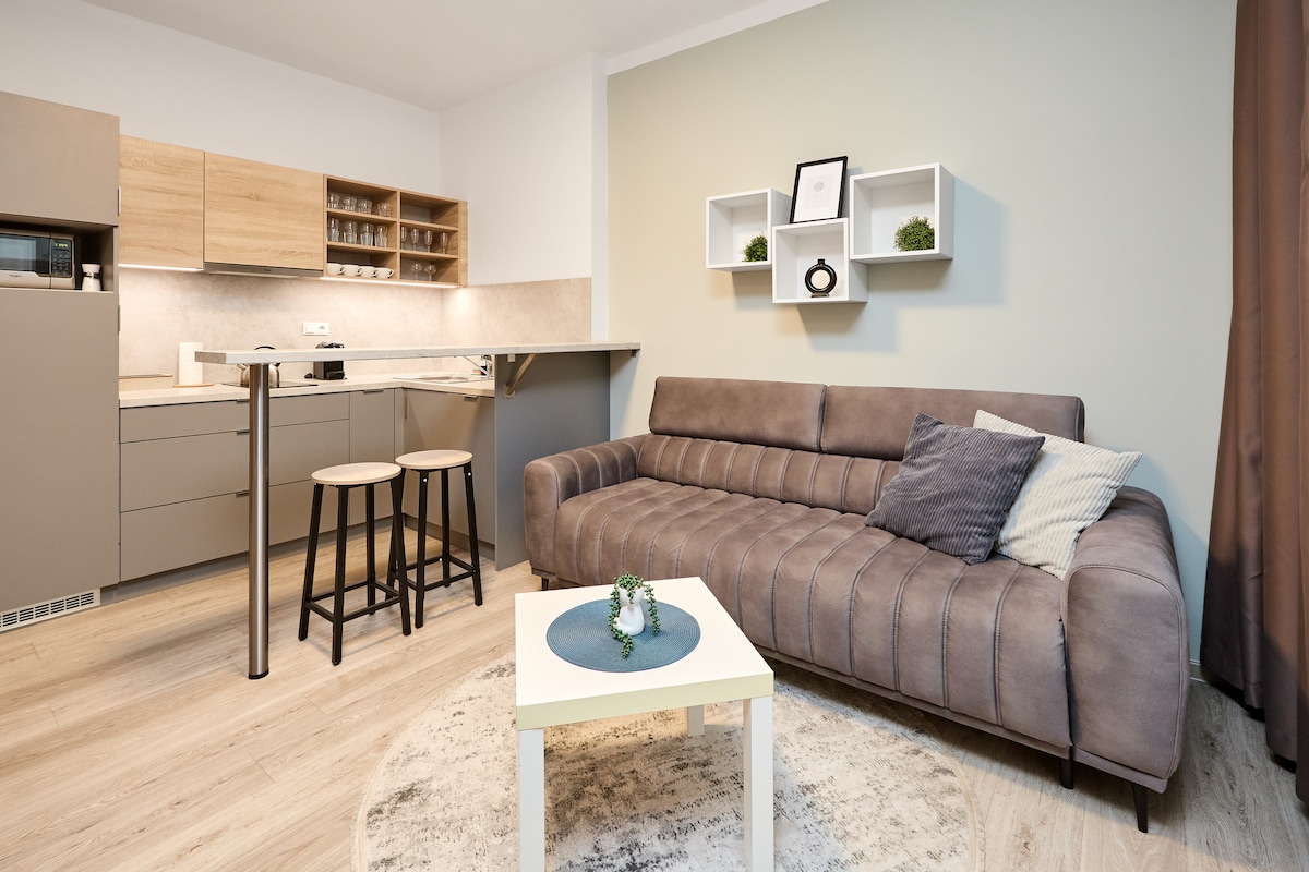 ¡RESIDENCIA Y DEPARTAMENTOS NUEVOS A ESTRENAR! El apartamento ofrece comodidad y un entorno tranquilo donde puedes relajarte después de un día explorando los lugares emblemáticos de Praga. Con comodidades modernas y un ambiente acogedor, te sentirás como en casa rápidamente. Uno de los principales atractivos es su excelente conexión con Praga. Puedes llegar al centro de Praga en pocos minutos. Después de un día de turismo, puedes disfrutar de paz y relajación en nuestro agradable apartamento.
