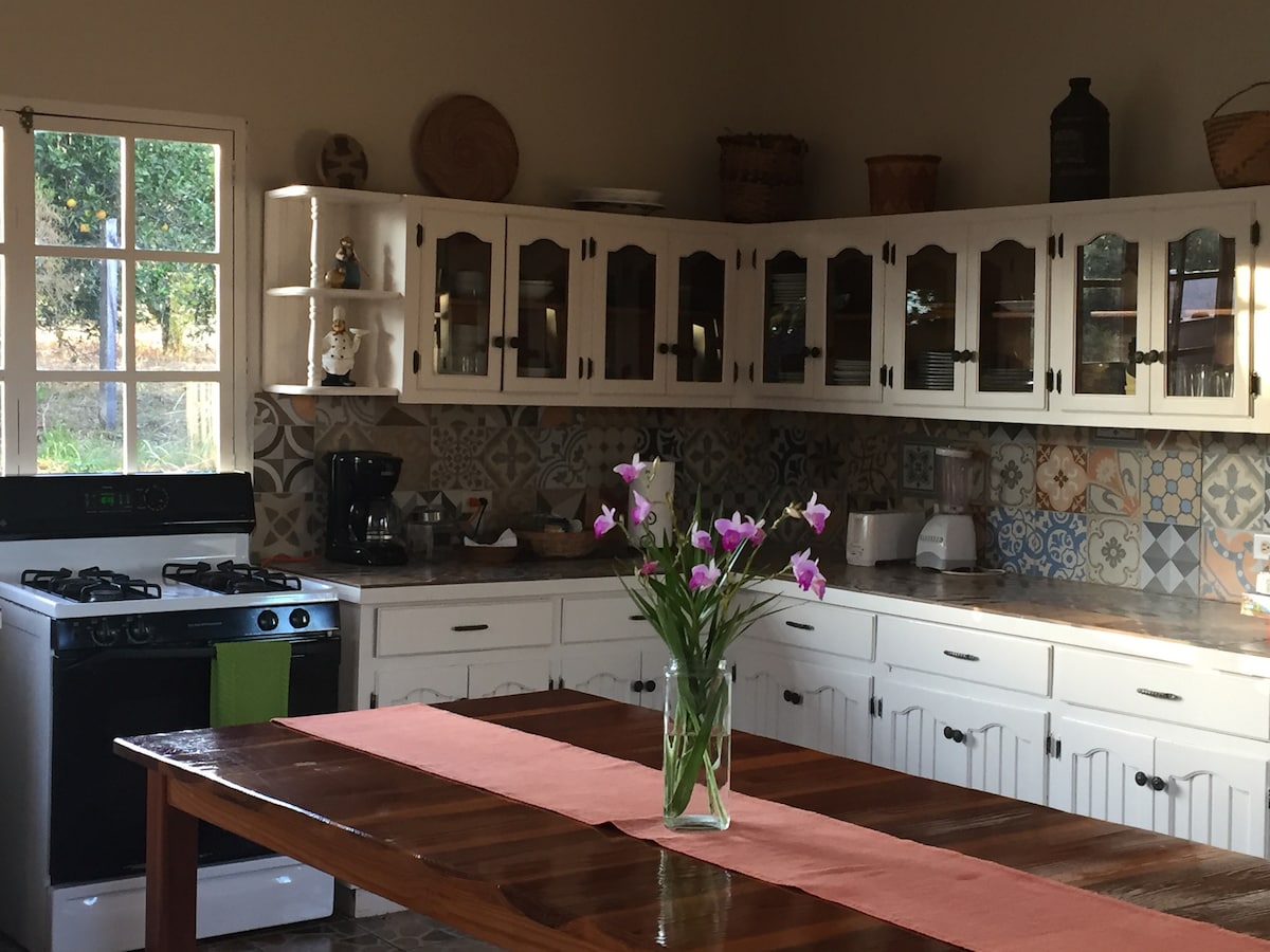 Entorno romántico, inmerso en la naturaleza y, sin embargo, cerca de la ciudad. Internet de fibra óptica. Ubicado en extensos jardines tropicales en una finca cafetera tradicional de Boquete. Abundancia de aves, comederos y colmenas de abejas nativas. Somos el hogar de la exposición de mariposas más grande de Panamá y de la empresa de miel especializada. Ofrecemos un desayuno abundante. Tenemos capacidad para 4 personas, pero el precio de la reserva, incluido el desayuno, es para 2 personas. Cobramos 15 dólares adicionales por persona mayor de 12 años y 10 dólares adicionales por niño menor de 12 años.