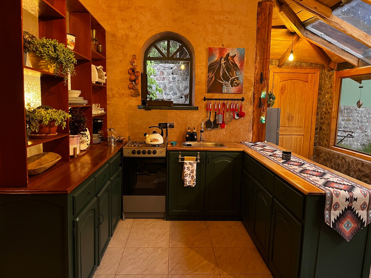 Confort, limpieza, accesible desde el centro de Riobamba. Construcción nueva. 🚘 para tu comodidad, el tamaño del vehículo hasta tipo SUV mediano (2 filas de asientos). Tienes una cocina totalmente equipada 🍳👩🍳 que permite preparar tu desayuno con un sabroso café ☕️! Ropa de cama premium.