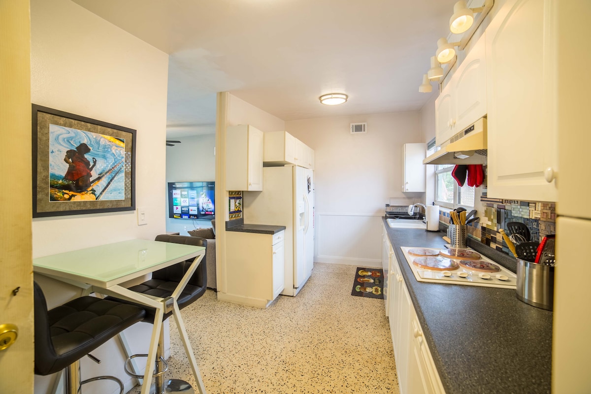 Ven a relajarte en un pedazo de historia. ¡Nuestro histórico bungalow de los años 20 ofrece justo eso! Renovamos esta casa para ofrecer todas las comodidades que esperas, al tiempo que garantizamos que su carácter único brille. Te encantará nuestra ubicación privilegiada, a unas cuadras del animado corazón del centro y del hermoso campus de la Universidad de Stetson. Comienza el día en el porche delantero, perfecto para disfrutar del vecindario, o encuentra un refugio tranquilo en el porche trasero con vistas al patio vallado, un refugio para los niños.