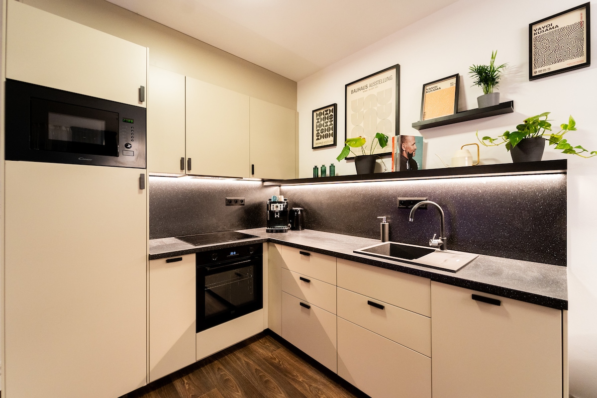 El edificio de apartamentos Black & White Apartments se encuentra en Brno, en una zona tranquila rodeada de naturaleza. El alojamiento está cerca del recinto ferial de Brno y también cerca de la salida de la autopista a Praga. Los apartamentos están completamente equipados con muebles, electrodomésticos, aire acondicionado y la privacidad de los huéspedes está garantizada gracias a las persianas de las ventanas. Los huéspedes pueden disfrutar de café Nespresso, té y agua gratis. El apartamento incluye un minibar de pago.