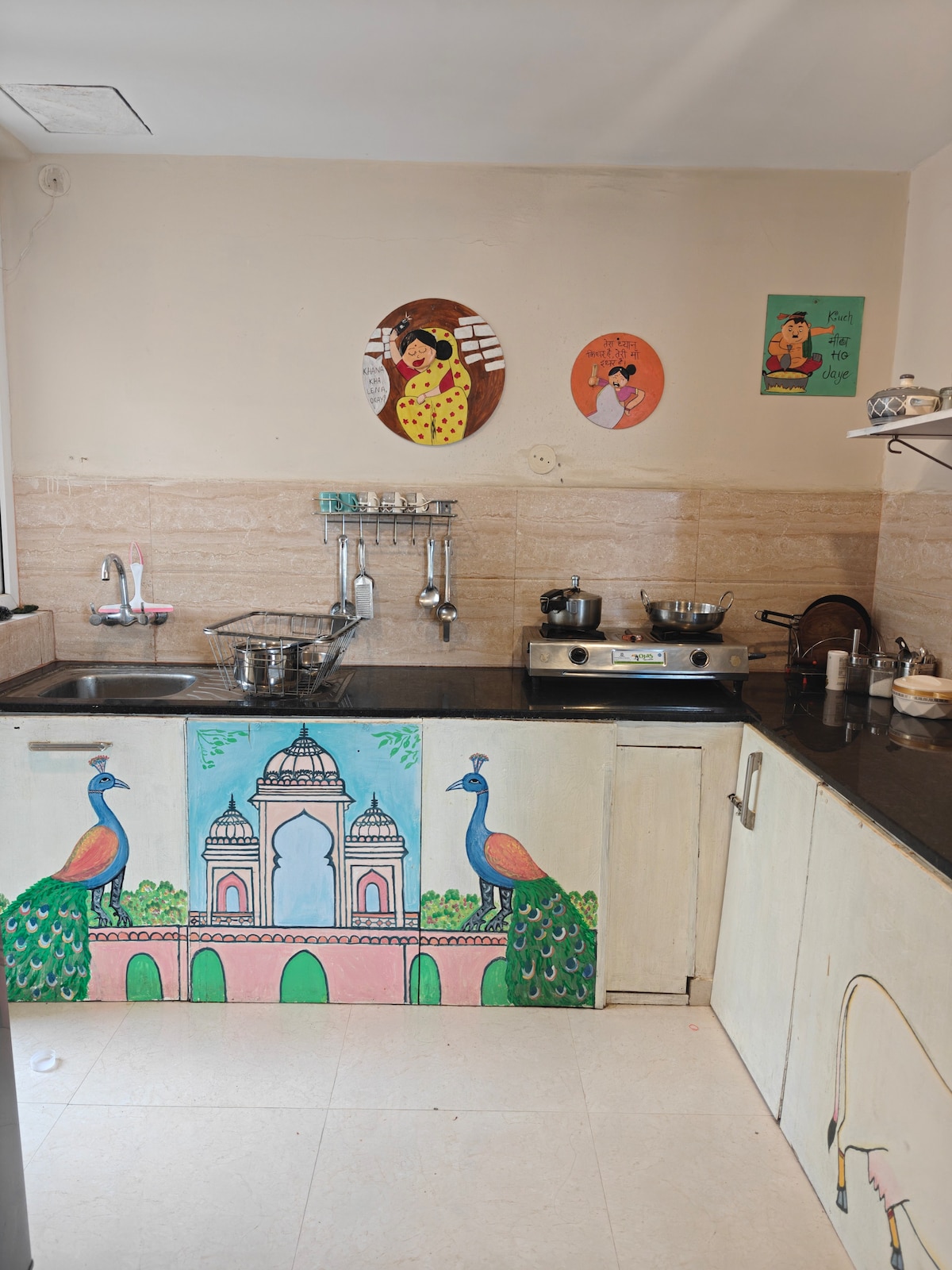 Laugh Tales: A Boutique Stay in Vrindavan Experience "feel-good vibes" at Laugh Tales, a soulfully designed studio nestled on the 4th floor of a premium township. Perfectly blending the spirit of nomadism with spirituality, our home offers a peaceful sanctuary with breathtaking sunset views and lush green surroundings. Highlights- Prime Location: Located near ISKCON, Prem Mandir, and Banke Bihari Ji, Keli Kunj(abode of Premanand Ji Maharaj) steps away from local markets and ample parking.