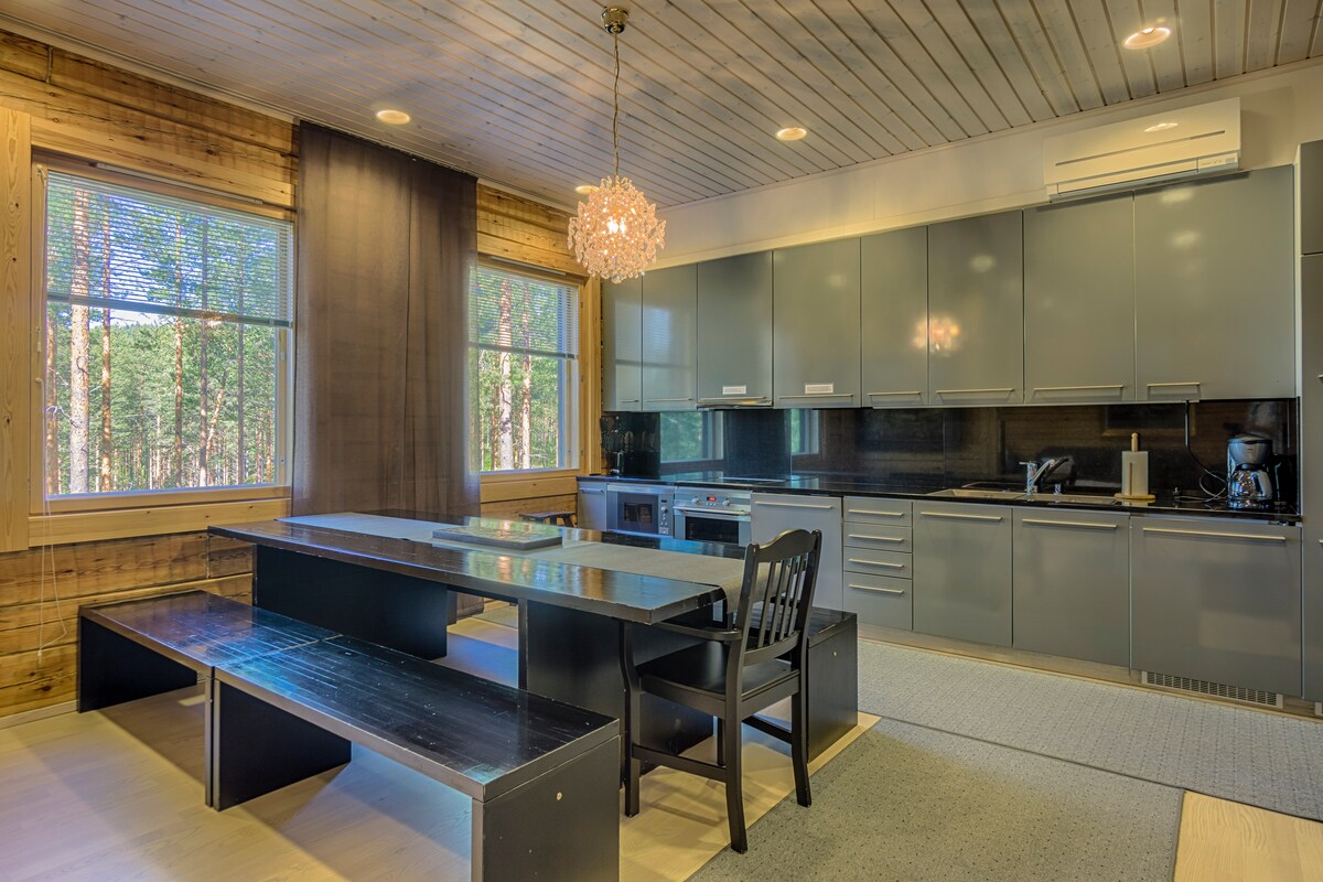 Kuohu es una casa de campo de sauna cálida y atmosférica terminada en 2015 por un pequeño río. En el anillo de una balsa, podrás relajarte en la sauna, la barbacoa o el fuego al aire libre. La casa de campo está en un pequeño camino de tierra, en total privacidad. El Parque Nacional Koli está a unos 30 minutos en auto, Höytiäinen Beach está a poco más de 2 km de distancia. Canoas disponibles y paquetes de comida locales disponibles para alquilar.