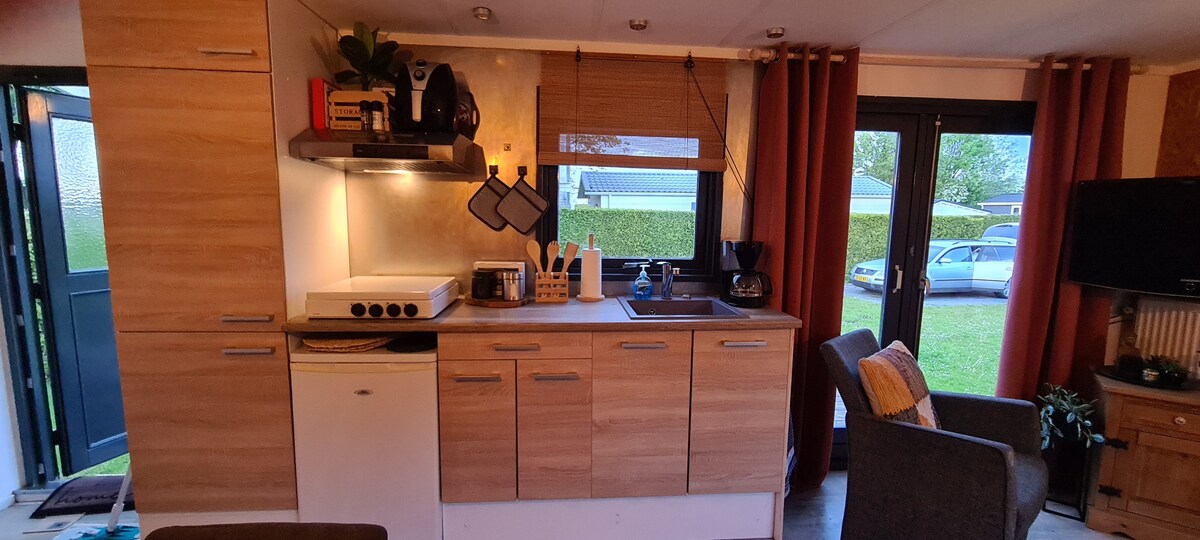 Acogedor chalet amueblado (4p) en Friesland. Ubicación gratuita, en el prado. Naturaleza, cultura, lugares hermosos, lagos, el mar de Wadden, las islas Wadden. Perfectamente accesible. En auto, bicicleta, a pie o agua.
