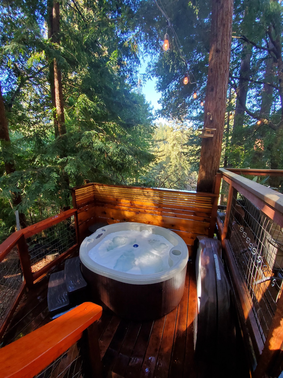 Relájate en esta acogedora cabaña en las montañas de Santa Cruz. A 30 minutos del centro de Santa Cruz y de las playas. Este encantador estudio de 400 pies cuadrados es el entorno perfecto para desconectar de la vida de la ciudad y sumergirte en las secuoyas. La cabaña cuenta con una cama tamaño queen, baño completo, cocina y barbacoa. El patio privado incluye una bañera de hidromasaje, chimenea de propano y hamaca para relajarse y descansar por completo. Ten en cuenta que la cabaña está en una carretera de un solo sentido y ventosa. Hay WiFi, pero no TV ni aire acondicionado. Permiso SCC # 241449
