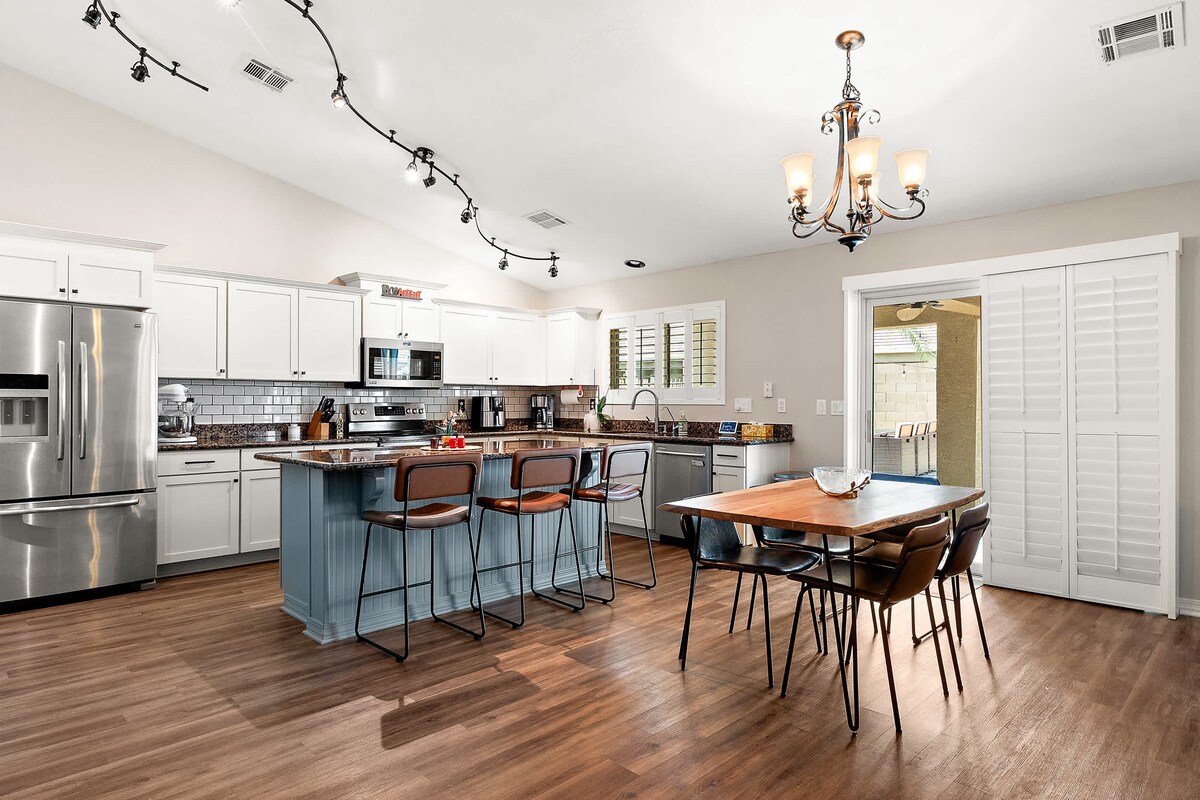 Esta encantadora villa de tres dormitorios y dos pisos en el desierto es el lugar ideal si buscas un alojamiento para desconectar y relajarte en Surprise, AZ. La casa tiene una bañera de hidromasaje, calefacción y aire acondicionado modernos, ablandador de agua para agua dura, wifi de alta velocidad, 2 televisores inteligentes, cocina totalmente equipada, patio al aire libre con asientos, lavadora y secadora, y también hay una piscina comunitaria disponible. Todos los dormitorios están arriba. Ubicada cerca de muchas atracciones en el área de Phoenix.