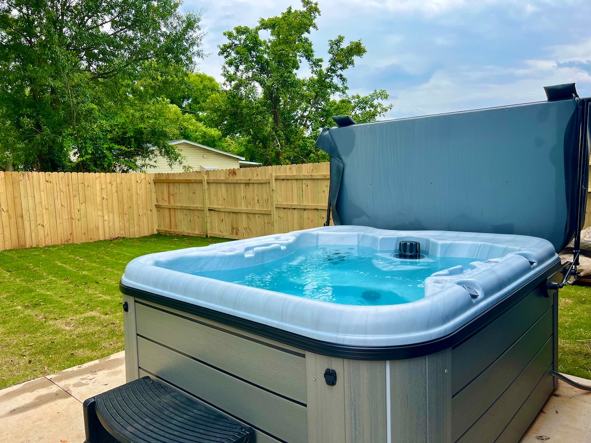 JACUZZI y oasis en el patio trasero en una casa remodelada y acogedora
