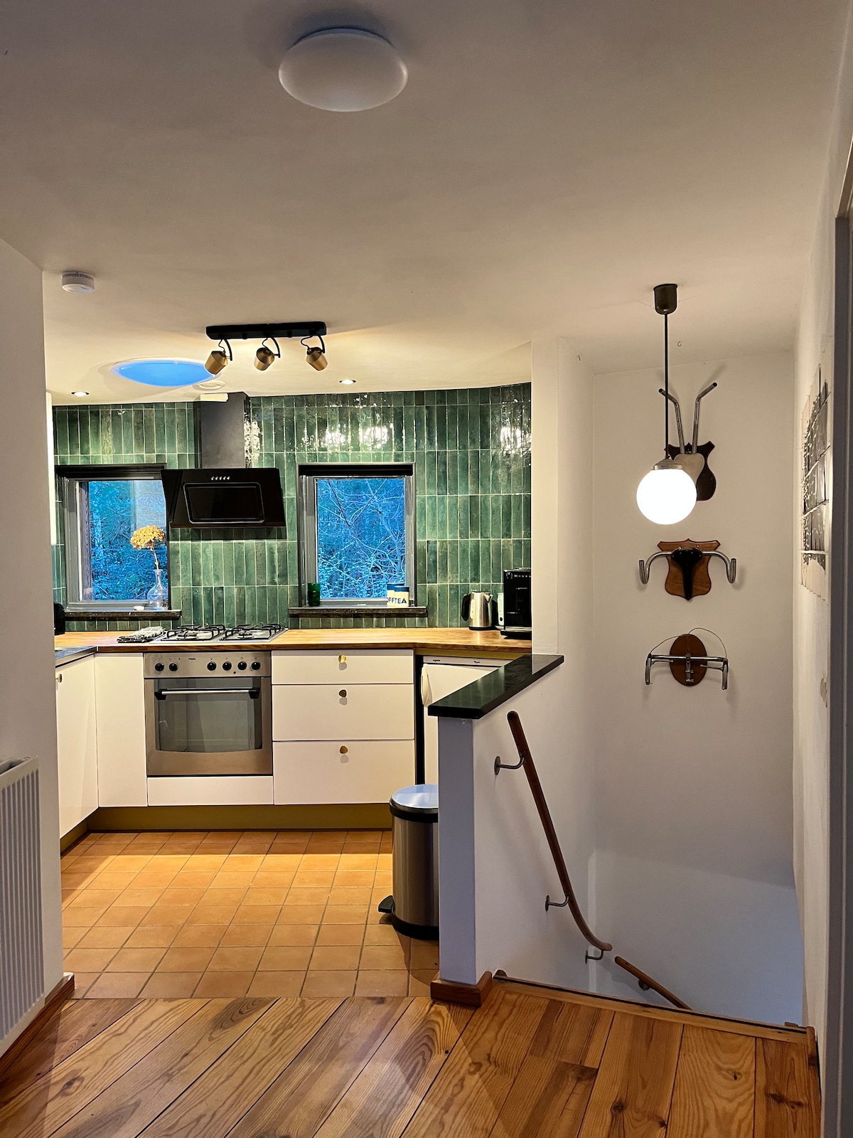 Nuestra casa es de antes de la guerra, pero completamente renovada en un moderno, cálido y acogedor Bed & Breakfast. Donde antes el inodoro estaba fuera en el jardín y la cama en el medio de la sala de estar, ahora no tienes que salir de la casa para ducharte y usar el inodoro. El interior es acogedor gracias a la cálida decoración y la acogedora estufa de pellets de madera. Por la noche, después de un día de surf, sauna o senderismo, es maravilloso relajarse junto a la chimenea mientras disfrutas de una bebida. Buena conexión wifi también para trabajar.