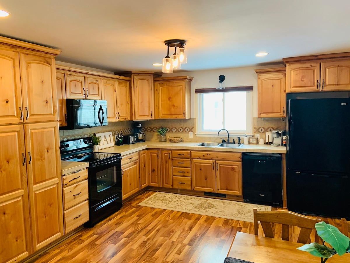 Relájate con toda la familia en esta tranquila casa en Spirit Lake, Iowa. ¡Es el lugar perfecto para pescar, divertirse en familia en Okoboji y Arnold's Park y para los amantes del golf! ¡Esta casa se encuentra a 4 manzanas al oeste del lago East Okoboji, a 1,5 millas de Big Spirit Lake, a 1 cuadra de un carril bici, a 10 minutos del parque Arnold, parque acuático Boji Splash frente al lago, playas, bar descalzo, muelles para barcos y a 10 minutos de los 5 campos de golf! ¡A 5 minutos de Walmart, Hy-Vee, gasolineras y restaurantes!