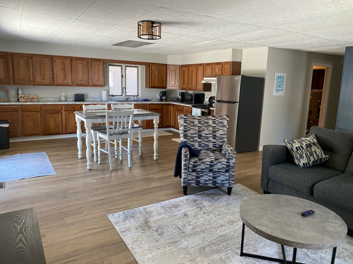 ¡Ponte cómodo en nuestro hermoso alojamiento con fácil acceso al West Lake Okoboji! ¡Mira el lago desde la sala de estar! Ubicado en la tranquila Triboji, este alojamiento ha pasado por una renovación que incluye muebles nuevos con una sensación de comodidad. Totalmente amueblado con dos dormitorios, dos salas de entretenimiento, cocina completa, baño completo, tres entradas y un patio trasero. Tendrás mucho espacio para amigos, familia y todos tus juguetes lacustres.