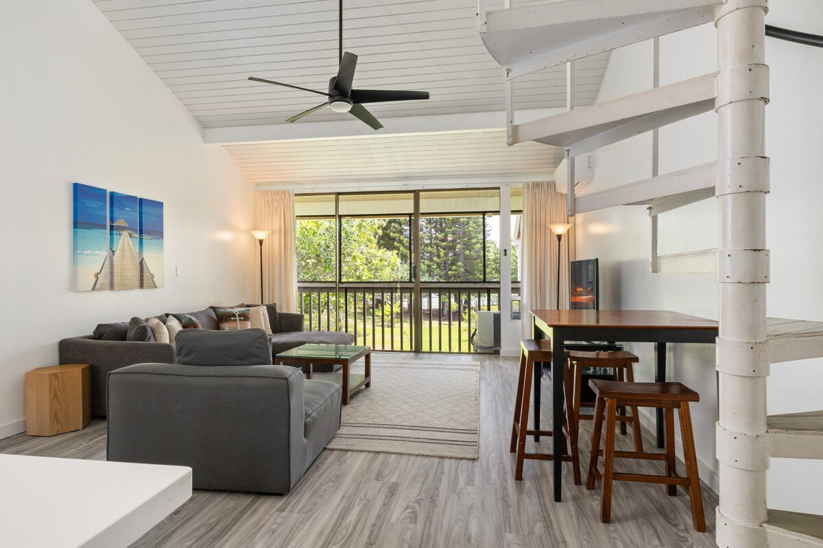 Ven a disfrutar de este espacioso apartamento de diseño recientemente renovado en la hermosa Turtle Bay. Es tan cómodo como bonito. Ya sea para desayunar en la cama o tomar una copa en el columpio lanai, es posible que no quieras salir de este paraíso tropical. Todo se ha actualizado, incluidos los colgantes seleccionados a mano que se pueden atenuar para adaptarse a tu estado de ánimo. Hay una piscina cercana, playa y senderos tropicales para caminar. En el hotel Turtle Bay, recién renovado, encontrarás restaurantes y tiendas.
