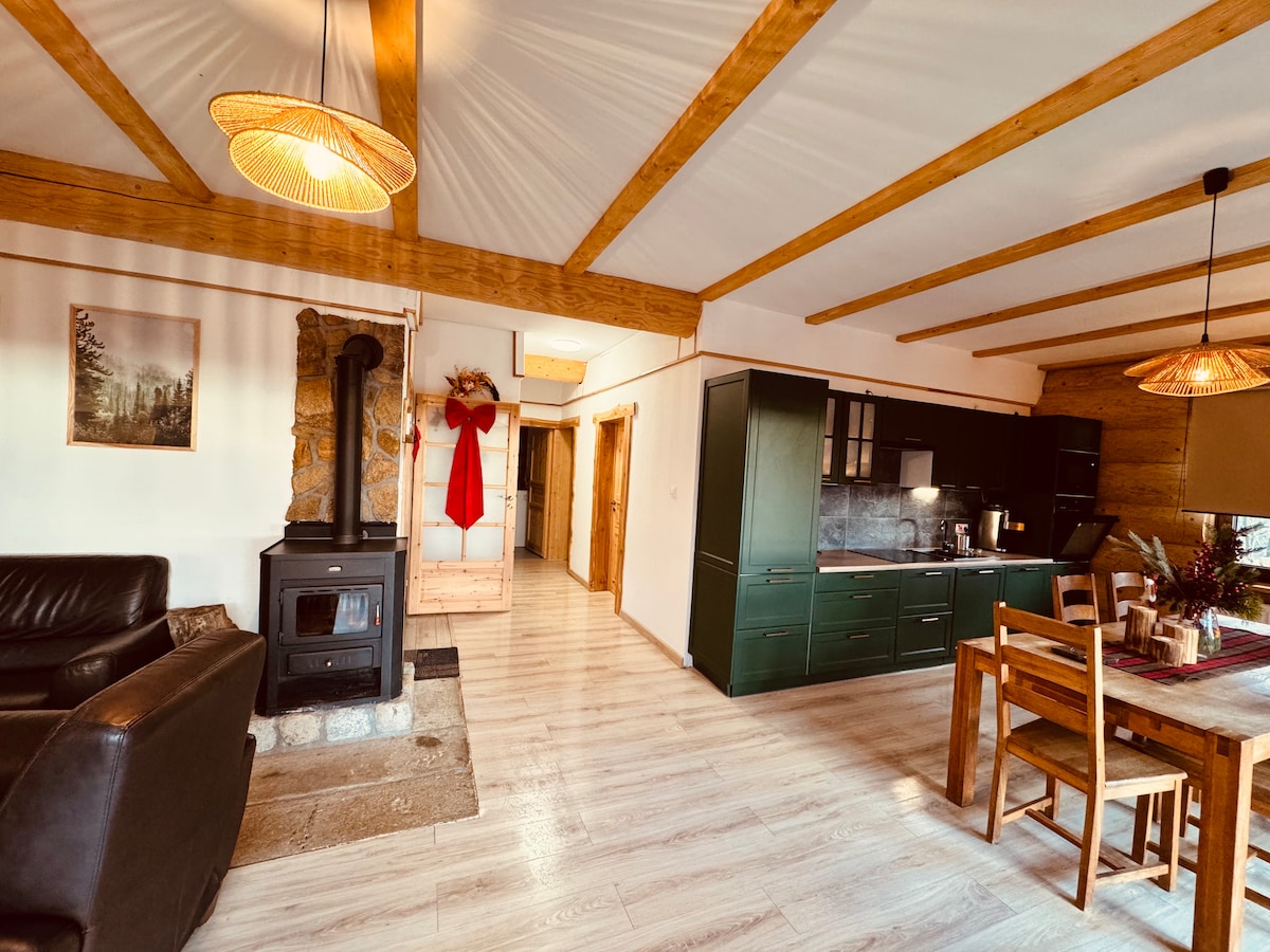 La casa se puede alquilar como un edificio completo: máximo 9 camas y 2 bebés en cunas. Tenemos 4 dormitorios, 3 baños, cocina equipada y sala de estar. En verano, los huéspedes se relajan en las terrazas y hamacas. En invierno, la casa se calienta con electricidad. Si los huéspedes desean disfrutar de la atracción adicional de una chimenea o hoguera, pueden comprar madera en el lugar. Las saunas y los jacuzzis están sujetos a una tarifa de acuerdo con la lista de precios en el sitio web. Pueden estar cerrados por razones técnicas.