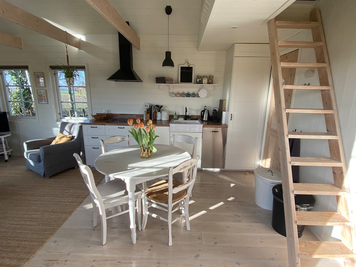 En nuestro gran jardín, hay una linda casita para vosotros. Desde el jardín se puede ver el faro. No se admiten mascotas. 2 preciosas camas de somier, ducha privada, inodoro, TV, WiFi, nevera, café/té y microondas. Estaciona tu auto de forma gratuita con tu estancia o carga tu bicicleta en tu casa de campo (trae tu propio cargador) ¡Disfruta de un paseo por la playa hasta Vlissingen, los bonitos carriles bici o un día en el histórico Middelburg!