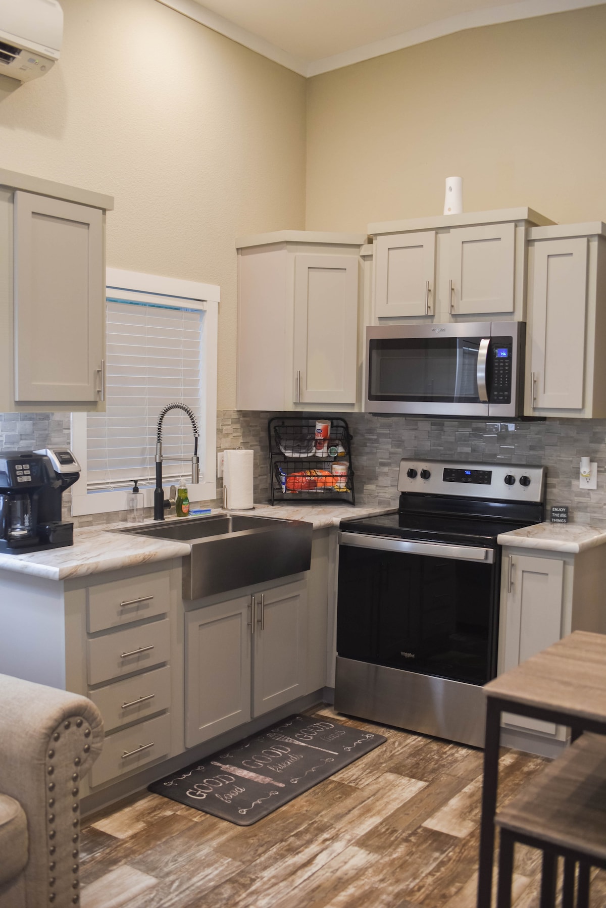 ¡Bienvenido a tu pequeña porción del cielo en el país! Esto es lo mejor de lo mejor cuando se trata de casas pequeñas y, para ser honesto, ¡no hay nada pequeño en absoluto! Capacidad para alojar cómodamente a 8 personas. Tiene un dormitorio con una cama tamaño queen, un loft en la planta superior con 2 camas tamaño queen y un sofá cama tamaño queen. La minicasa está situada en mi propiedad de 140 acres, junto a un lago privado de 10 acres. Todas las actividades acuáticas están incluidas en tu estadía. Hay alquileres de carritos de golf disponibles.