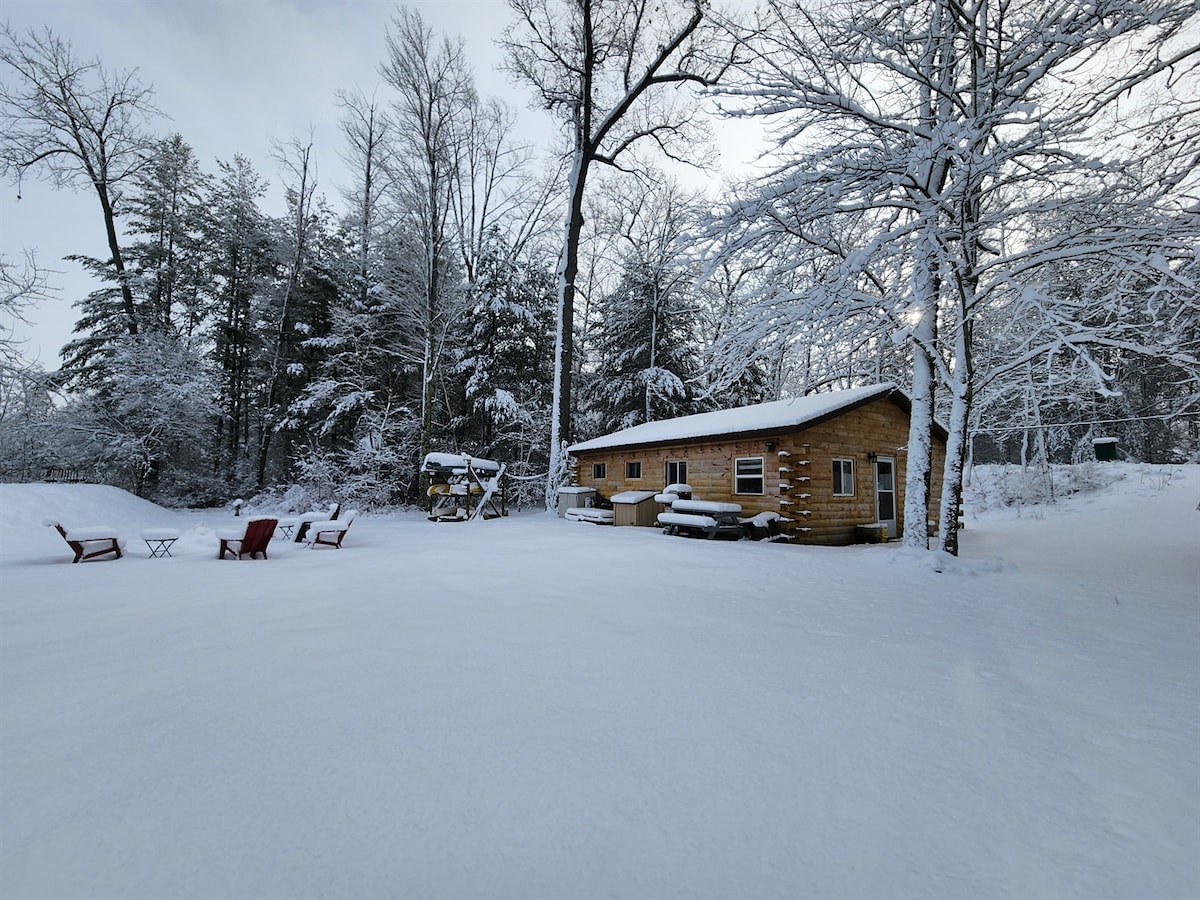 Pequeña cabaña en el bosque rodeada de tierras estatales y federales, motos de nieve, vehículos todoterreno y senderos para bicicletas. A 30 minutos en coche del hermoso lago Míchigan. La cabaña tiene calefacción en invierno y aire acondicionado en verano. La cocina tiene platos y una cafetera para esa primera taza recién hecha. La cabaña es rústica y se encuentra en el bosque y es visitada por la naturaleza. Los residentes locales son ciervos, osos y ardillas. No hay wifi (todavía), pero tenemos dos televisores con canales locales. Fogata y parrilla exterior.