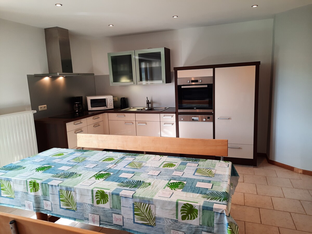 Impresionante estudio moderno, luminoso y acogedor en el primer piso de un granero completamente renovado. Tranquilo, en el corazón del Centro Ardenas, a 100 metros de las tiendas de comestibles, a 200 metros de un centro comercial. Ideal para una pareja. Cocina equipada, baño separado con ducha italiana e inodoro. Gran terraza de 25 m2 con mesa para 2 personas y muebles de jardín (verano). Lavadora compartida con los demás estudios. Una cama doble de 160 + un sofá cama (1 adulto o 2 niños) en la misma habitación.