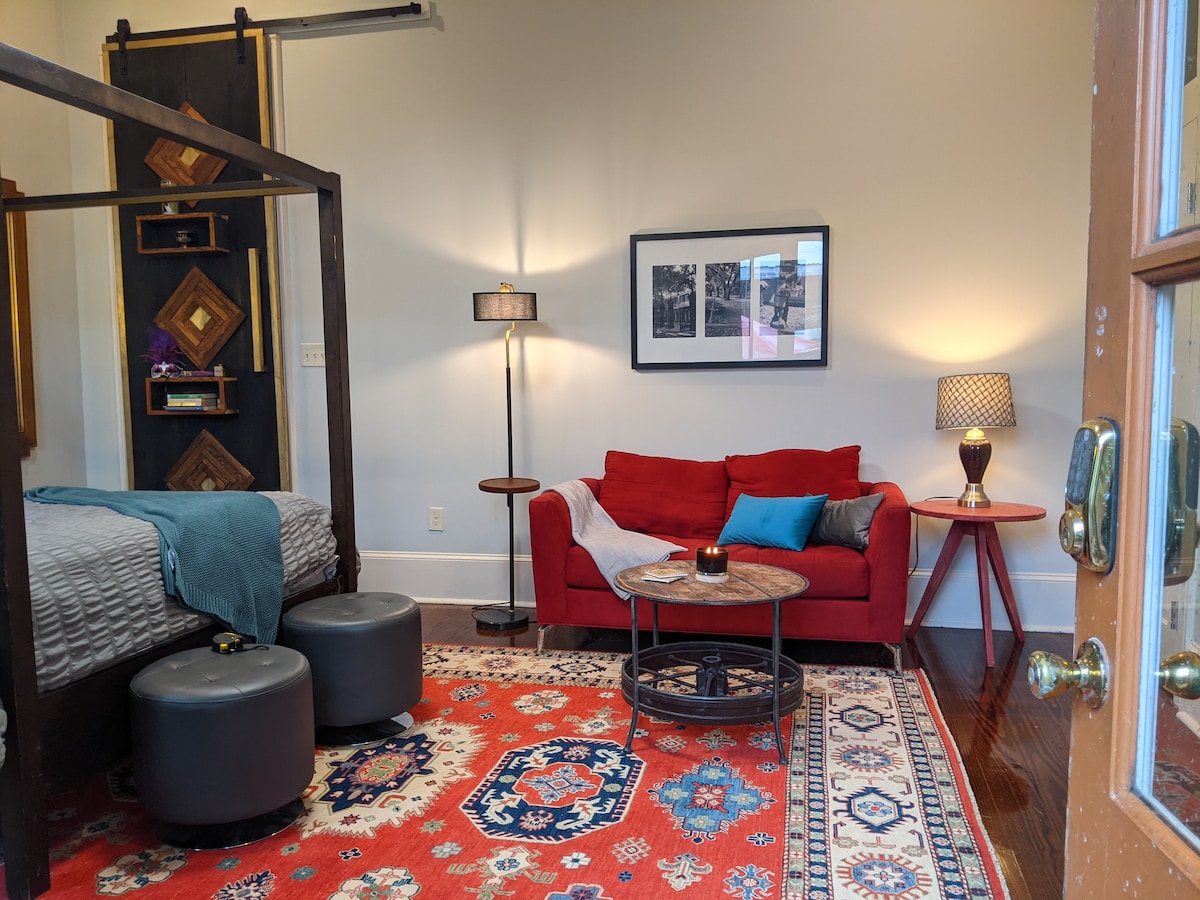 Disfruta de la comodidad de un hotel boutique en este luminoso estudio de diseño dentro de una casa restaurada de Nueva Orleans de 1910, con fácil acceso a Magazine Street, el tranvía de St. Charles y a solo 5 minutos del Superdome. Ideal para parejas, viajeros de fin de semana y huéspedes que buscan un alojamiento privado y con estilo. Nuestro alojamiento cuenta con comodidades boutique que incluyen ropa de cama lujosa para una gran noche de sueño, batas Brooklinen, una bañera con patas, café de cortesía, wifi rápido, televisor inteligente y un amplio porche y jardín.