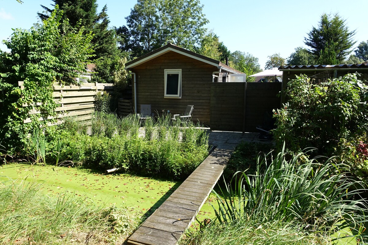 Cómodo bungalow con un jardín soleado.