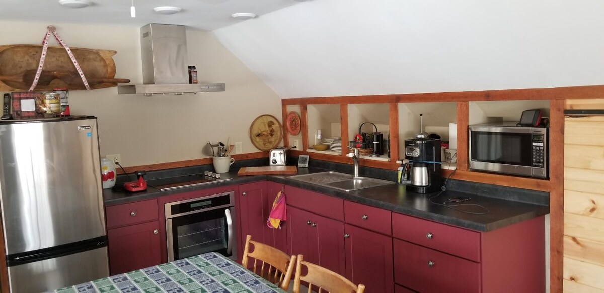 El Knotty Pine Loft es el nivel superior (700 pies cuadrados) de nuestro garaje/edificio de invitados. Subiendo un tramo de escaleras encontrarás una cocina y sala de estar con paneles de pino, dormitorio privado y baño de 3/4. Las ventanas del loft tienen vistas al bosque de pinos y robles, un pantano de alerces y, a 300 yardas, se encuentra el lago Spooner. Nota: El Knotty Pine Loft se llamaba Lakeview Loft, pero después de que una tormenta de viento derribara varios árboles grandes, han crecido nuevos abedules y robles rojos y han disminuido las vistas del lago. ¡La vista vuelve en invierno!