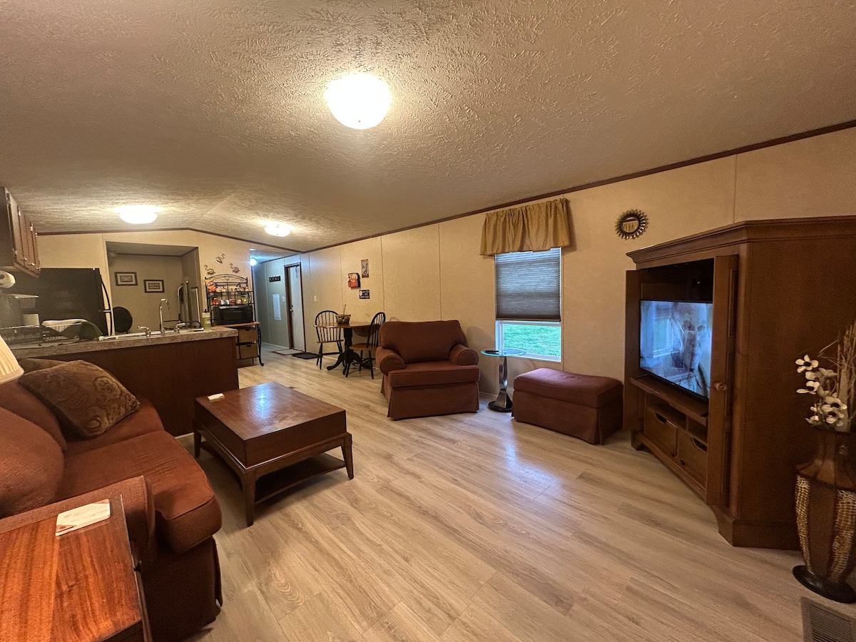 Retiro pacífico en una granja. Los trabajadores, las familias y las parejas disfrutan de 2 hermosas salas de estar, cocina bien surtida, gran comedor y 4 televisores. Reúnanse o pasen tiempo privado en una de las cuatro habitaciones grandes. Fácil acceso en auto a la histórica Marietta y McConnelsville, al Parque Estatal Jesse Owens y a otras actividades. Rompecabezas y juegos para noches de invierno acogedoras. Perfecto para el fin de semana de un amigo o el retiro de un cazador. Los trabajadores que se hospedan en la zona nos dan reseñas de 5 estrellas. Descuentos para estadías más largas disponibles.