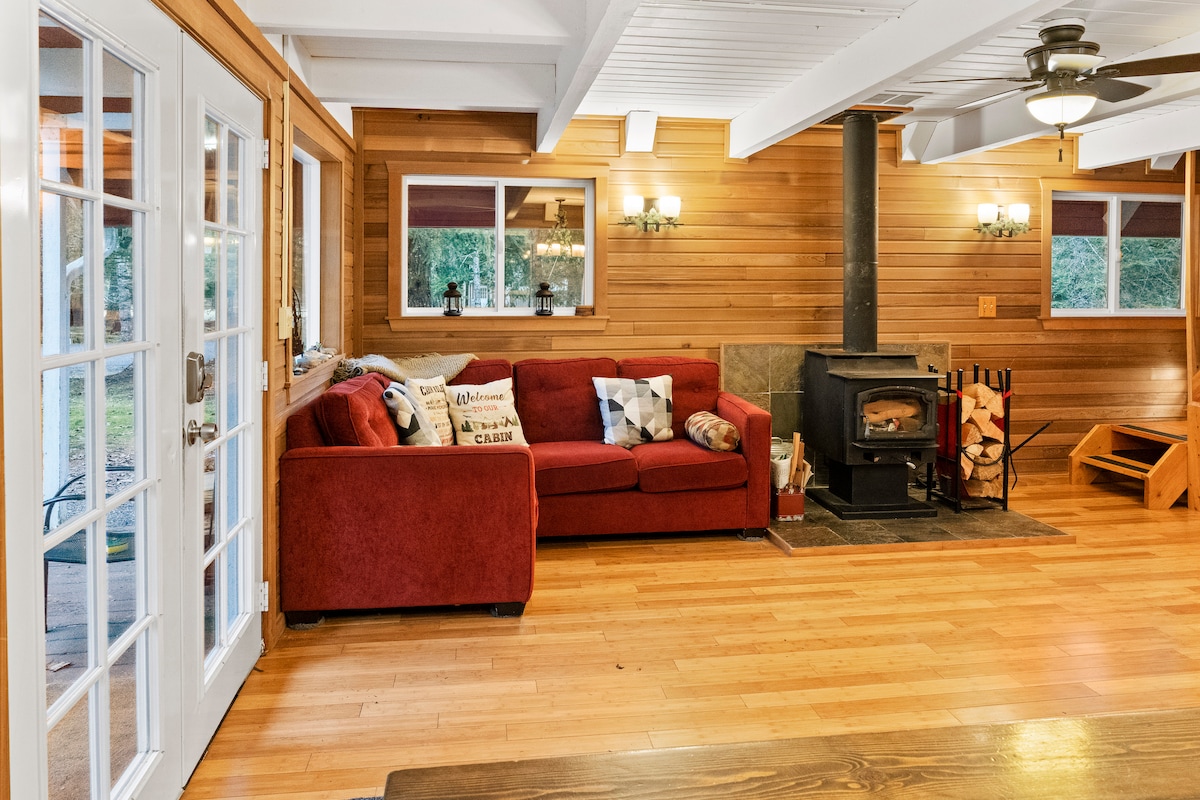 Ubicada en las montañas del norte de las Cascadas de Washington, Steller 's Jay Cabin en Timberlane Village es un refugio tranquilo en medio de imponentes árboles de hoja perenne, con acceso directo al río Skykomish. Esta cabaña alpina recientemente renovada ofrece espacio y privacidad, equipada con 2 dormitorios privados. Encanto, comodidad, serenidad. La escapada PNW perfecta. Cerca se encuentra la histórica ciudad ferroviaria de Skykomish e innumerables rutas de senderismo para todos los niveles de habilidad, es un destino ideal tanto para la relajación como para la aventura.