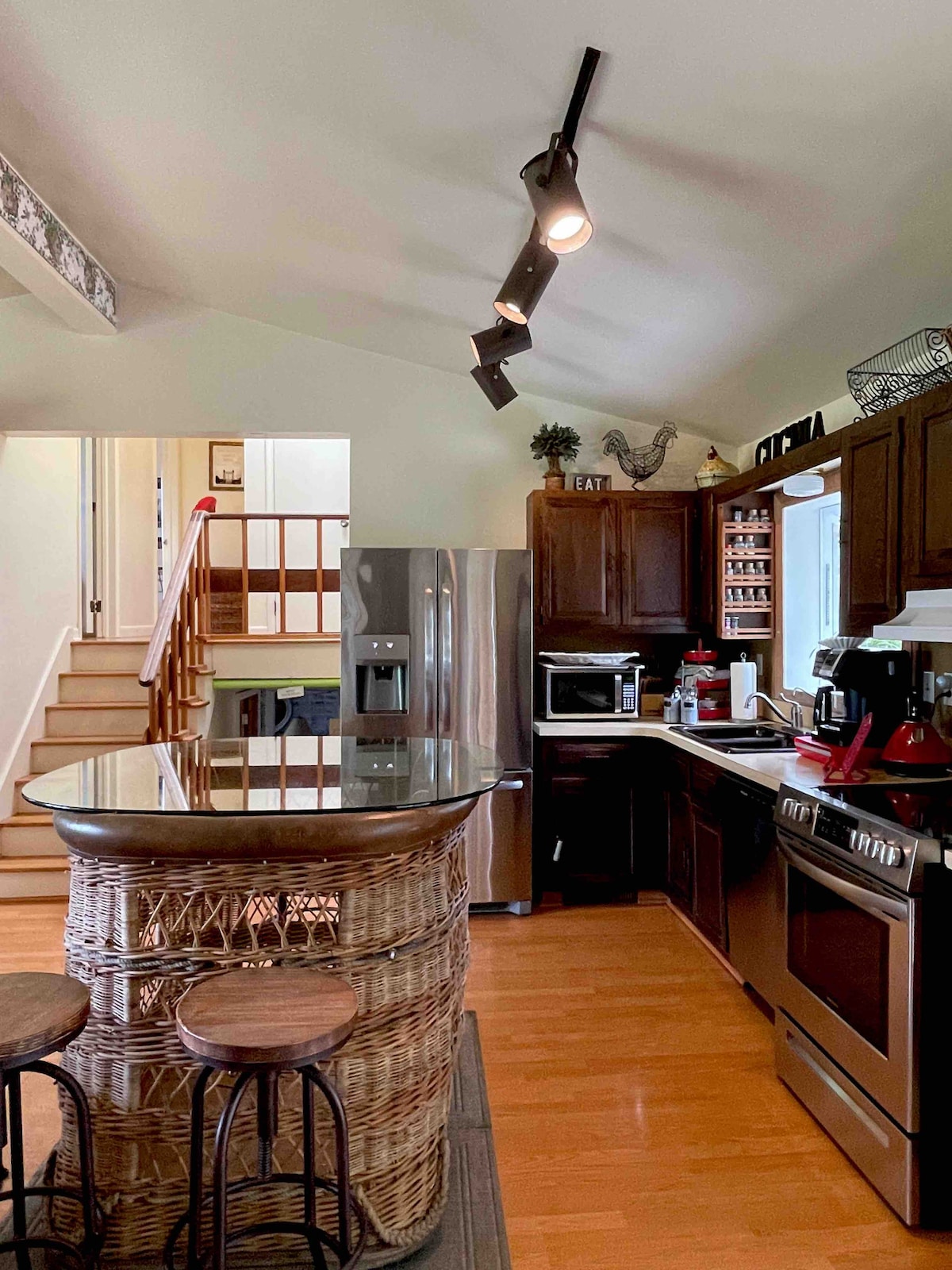 Este apartamento bellamente diseñado y decorado está unido, pero separado, de una casa de estilo rancho en un barrio residencial cerca de los campus de la Universidad de Michigan y la Universidad de Eastern Michigan. Incluye 1 dormitorio, 1 baño completo, cocina completa, lavadero, terraza con muebles de patio y plaza de aparcamiento. Hay una entrada independiente y un exquisito patio trasero. Ubicado cerca de la ruta de autobús y las principales arterias. Se ofrecen descuentos para estancias semanales y mensuales.