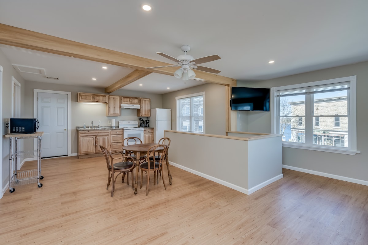 ¡Bajada de precios en julio y agosto! Relájate en tu propio apartamento privado totalmente equipado a pocos pasos del impresionante río St. Lawrence. Este apartamento de un dormitorio recién reformado, ubicado en el centro de Clayton, Nueva York, tiene todo lo necesario para trabajar, jugar y recargar energías. Disfruta de tu café de la mañana en el porche delantero o acomódate en el sofá frente a la chimenea después de un día en el río. Los electrodomésticos de acero inoxidable de última generación y una cocina totalmente equipada hacen que cocinar sea muy fácil, o puedes experimentar Cl