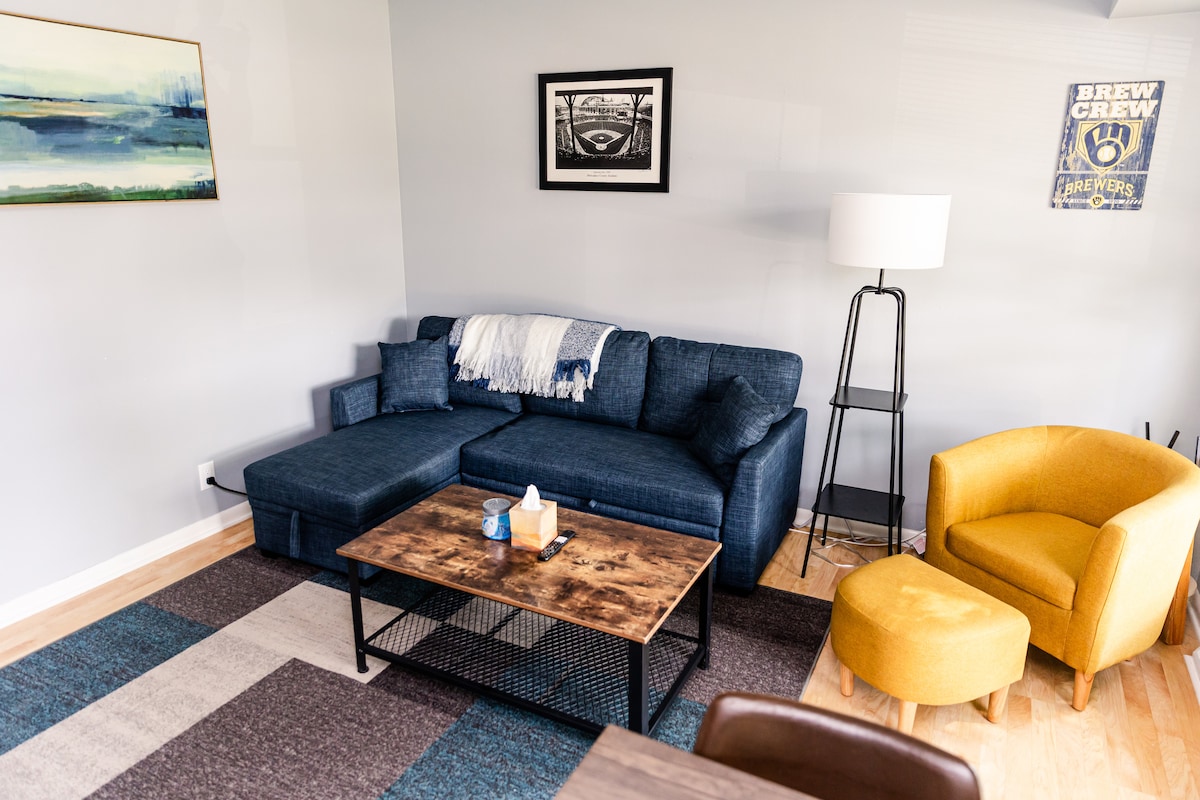Casa privada, sin espacios compartidos con los propietarios u otros grupos. Casa de 3 dormitorios ultra limpia, elegante pero acogedora, con decoración retro moderna de mediados de siglo. Capacidad para 8 personas en 3 dormitorios, incluidas camas plegables. Estadio de los Cerveceros/Campo AmFam a 2 millas de distancia (transporte gratuito a 1 manzana de distancia). Centro de la ciudad: Fiserv Forum, Rave, Wis. Ctr, Lakefront, Summerfest, Zoo, Med College, Casino a 5 millas. Prohibido fumar en el interior, no se admiten mascotas, no se pueden celebrar fiestas, no se permite la presencia de más de 8 personas sin permiso. Aparcamiento gratuito en la entrada larga.