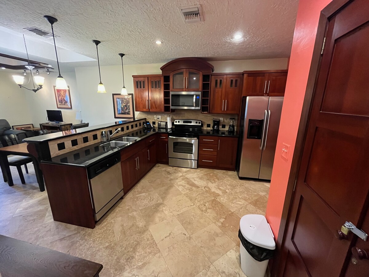 La suite Paya es una cama tamaño king con sofá cama doble, unidad de condominio estilo estudio. Si viajas con niños, esta unidad puede alojar a 2 adultos y 2 niños. Esta unidad es perfecta si te gusta la sensación de estar un poco más aislado. Paya está situado en el edificio norte en el nivel superior en el borde de la propiedad y se siente un poco más privado. Está bellamente decorado y tiene un escritorio y una silla para dar al huésped un espacio de trabajo adicional. En el exterior de las puertas correderas dobles con mosquitero hay una zona de comedor exterior con mesa alta y sillas, así como una zona de descanso para relajarse. Todo lo que necesitas para poder hacer tus propias cosas en la cocina, así como toallas y artículos de aseo que se proporcionan para tu uso en el espacioso baño con gran ducha a ras de suelo. Si quieres una escapada tranquila, este es un gran lugar para tenerlo. El desayuno está incluido en este alojamiento de 7: 00 a. m. a 9: 00 a. m. (los últimos asientos a las 8:30 a. m.) todas las mañanas con un menú fijo de precio. Solo pregúntanos y te mostraremos las opciones de desayuno mientras estás en la propiedad. Cocolobo Resort mientras se encuentra junto al mar, no tiene acceso directo a la playa. Sin embargo, las playas de arena blanca se encuentran en Half Moon Bay, que se encuentra a 5 minutos a pie de la propiedad.