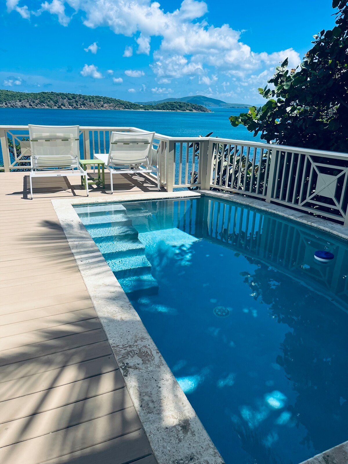 Escápate al paraíso en Whale Watch, un impresionante refugio en la costa norte de St. Thomas. - Dos amplios dormitorios con camas tamaño king y balcones privados. - Cómoda sala de estar con un sofá cama tamaño queen. - Cocina totalmente equipada y elegante comedor interior para seis personas. - Comedor exterior cubierto y parrilla. - Piscina privada y ducha al aire libre - Aire acondicionado completo y televisores en todas las habitaciones. - Impresionantes vistas al mar - Generador de respaldo automático.