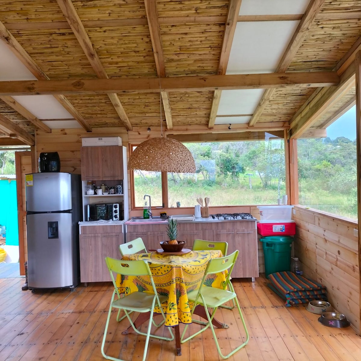 Vive una experiencia única en esta casa Yurta donde podrás disfrutar en compañía de tu familia y amigos de un paisaje inigualable con vista Iguaque, rodeada de naturaleza ,tranquilidad y silencio. Podran disfrutar de nuestro jacuzzi y ,malla catamaran en la terraza. Tenemos una yurta aparte donde podran hacer yoga, meditacion y sanacion a travez de los sonidos del gong, cuencos tibetanos y otros instrumentos vibracionales. Esto es opcional y no esta incluido en el precio .